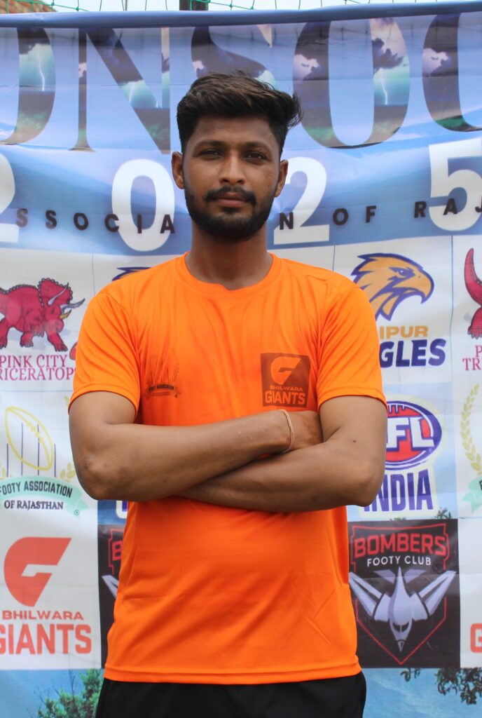 Kuldeep Singh is a determined and versatile Australian Rules Football forward from Rajasthan, with the skill to switch seamlessly to the wing when the game demands. Making his debut in November 2017 with the Rajasthan Eagles, he has also represented the Pink City Triceratops, showcasing consistency, sharp game sense, and a strong work ethic.