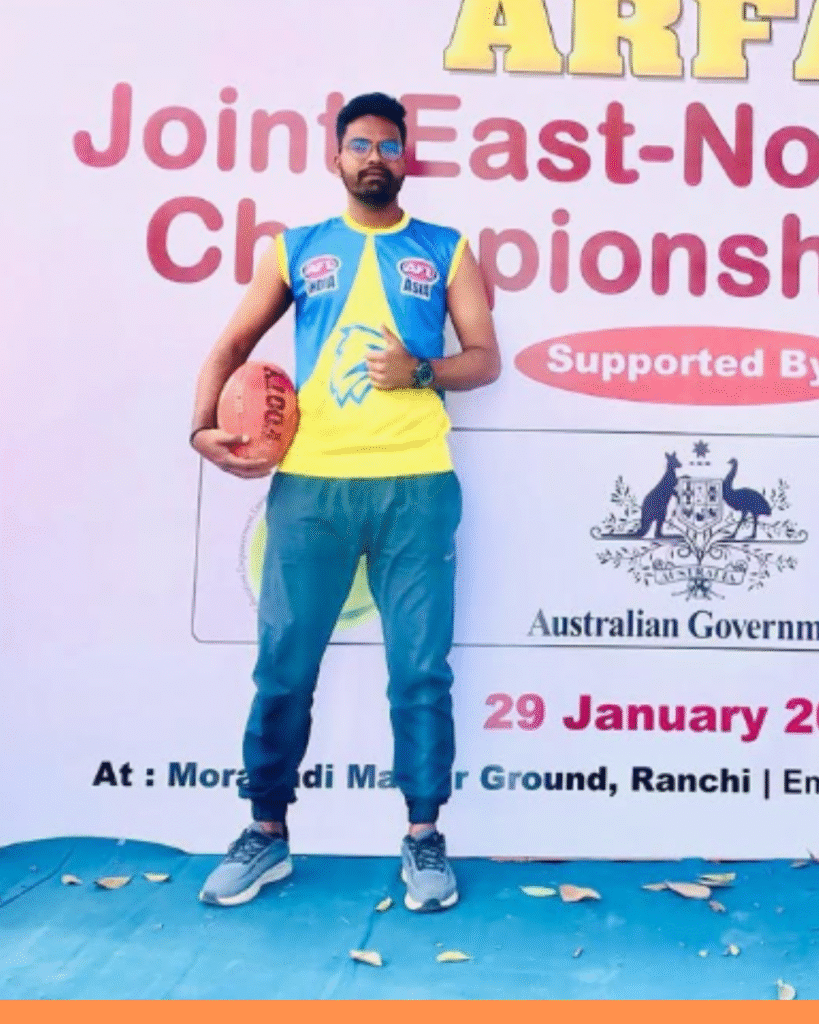 Rahul Yogi, known to teammates as Rahul, is a commanding presence in Australian Rules Football, excelling as a ruckman and adapting seamlessly to the wing when needed. Since his debut in November 2014 with the Rajasthan Eagles, he has been a reliable force for both Pink City Triceratops and Rajasthan Eagle teams. His proudest moment came during the National Championship 2014, where his strength, skill, and determination shone through. Rahul is admired for his leadership, discipline, and dedication to team success. Inspired by Nic Naitanui, he brings intensity to every contest and uses his game sense to guide and support teammates on the field. His dream is to represent the West Coast Eagles, and his work ethic makes that ambition a constant driving force.