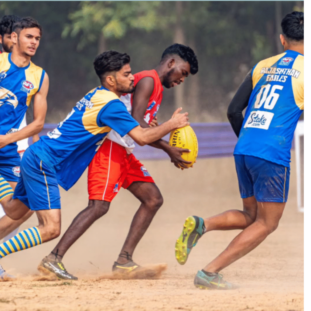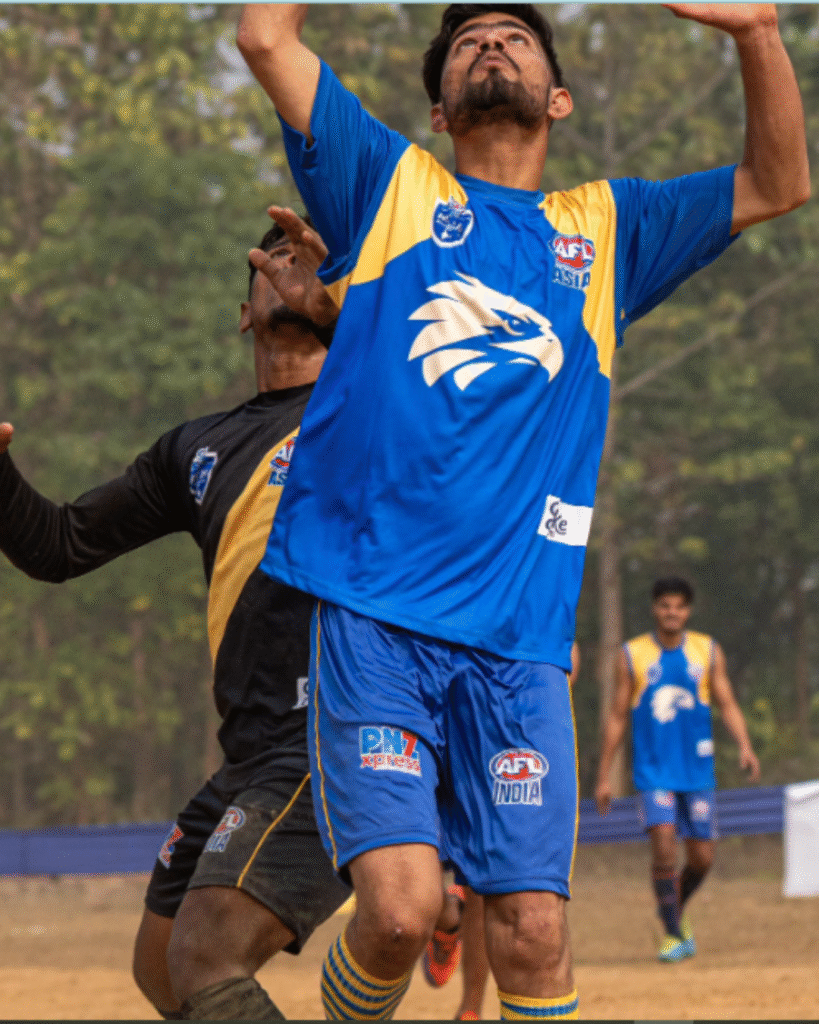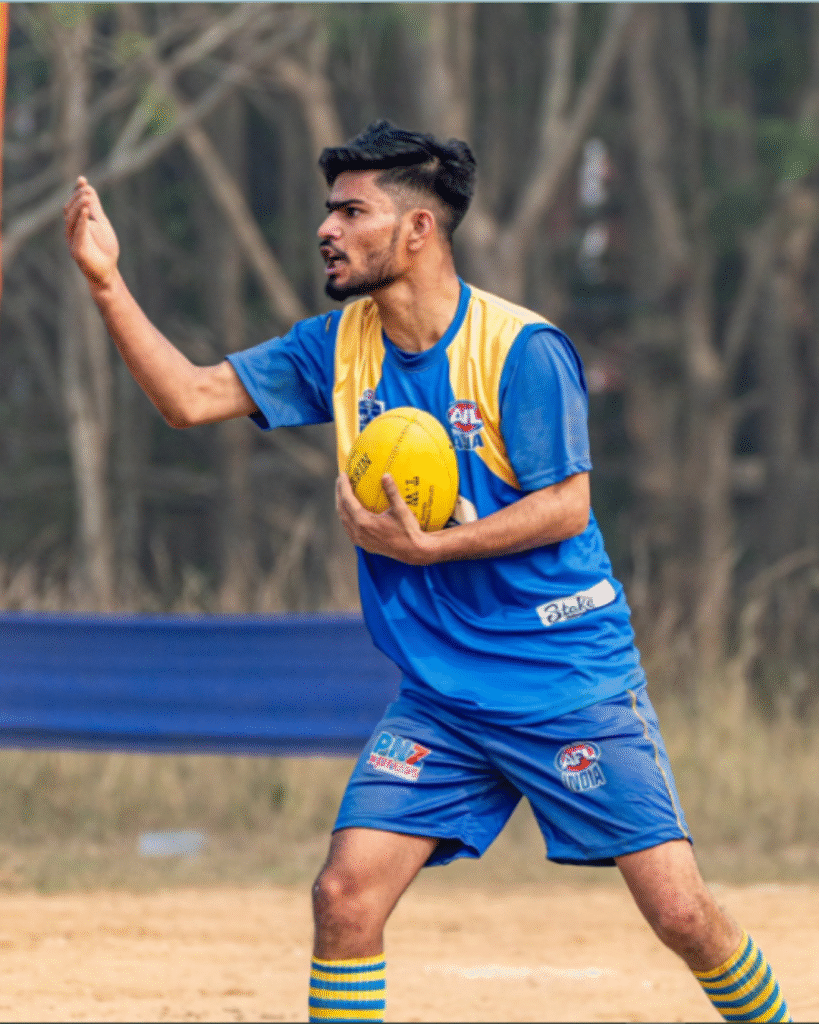 Rohit Sharma, fondly called Sharmi, is a powerhouse ruckman in Australian Rules Football, known for his towering presence and relentless work ethic. Debuting in November 2016 with the Rajasthan Eagles, he has also represented the Bhilwara Giants. Sharmi’s versatility allows him to dominate both in the ruck and in defence, making him a vital asset to his teams. Inspired by Josh Kennedy, his proudest moment was competing in the National Championship 2024, and his dream is to play for the West Coast Eagles. With a mix of leadership, humour, and a fiery competitive streak, he’s a true game-changer on and off the field.